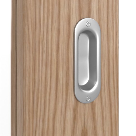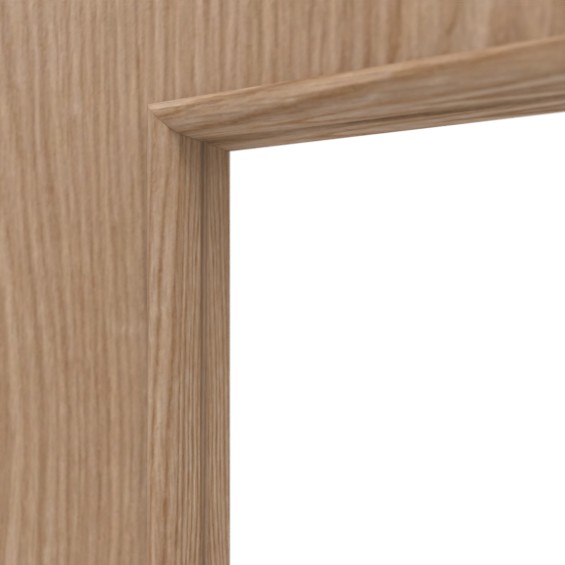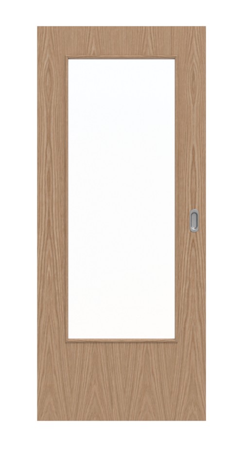 Wypełnienie pełne chroni skrzydło drzwi przed codziennymi uderzeniami. W zestawie znajduje się owalna muszla uchwytowa oraz prowadnica podłogowa, które zapewniają wyjątkowo płynny ruch fornirowanego skrzydła drzwiowego.