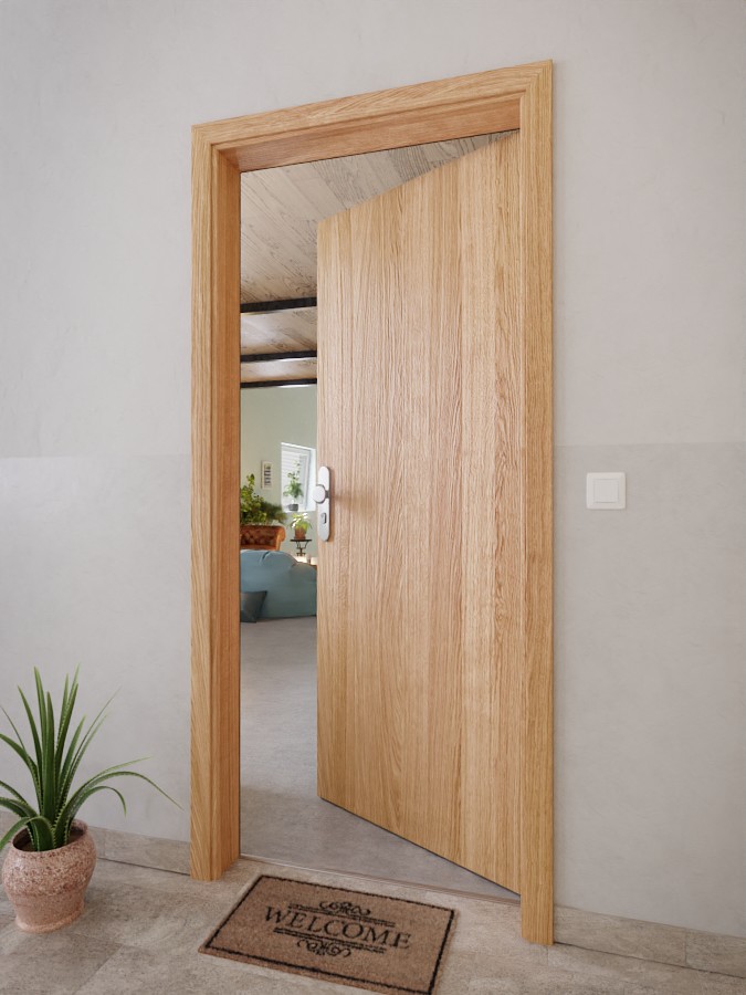 Drzwi mieszkalne chroniące przed hałasem z dwoma 3-częściowymi zawiasami: