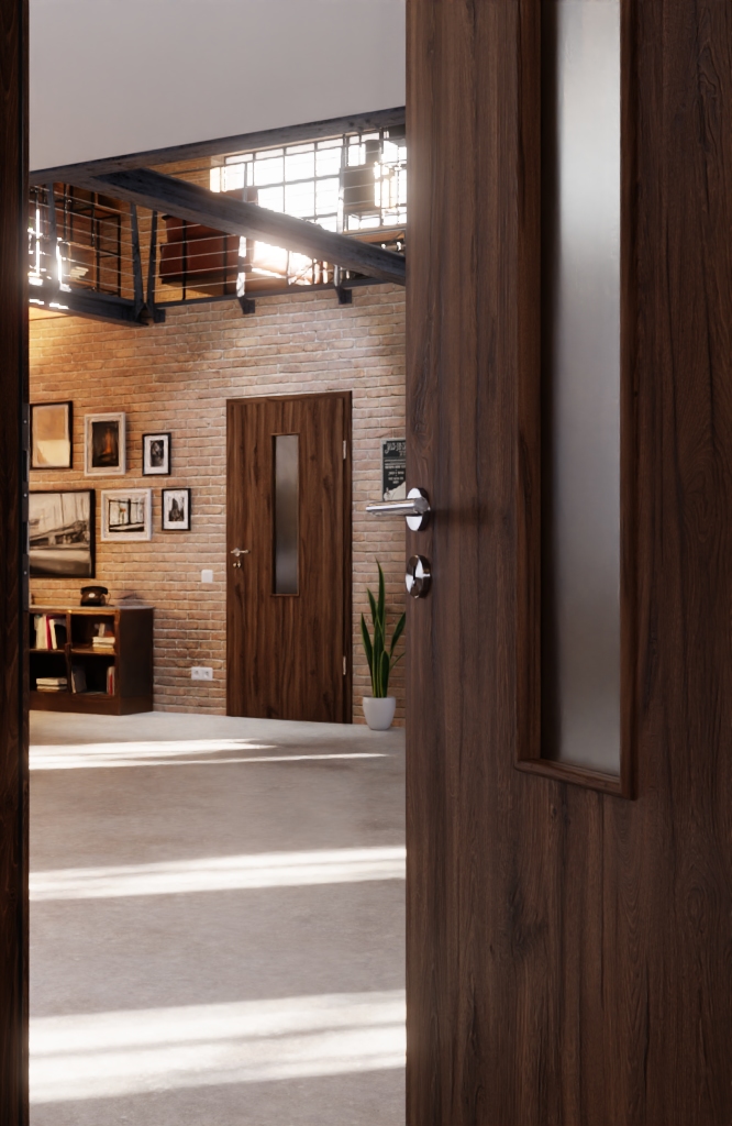 Robustne drzwi wewnętrzne ProLine w alpejskim dębie z stabilną płytą pełnoobwodową i 3-częściowymi zawiasami: