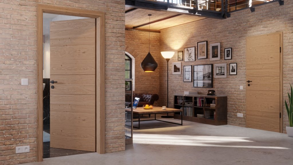 Drzwi wewnętrzne z powierzchnią okleinowaną prawdziwym drewnem w dębie o poprzecznych słojach: