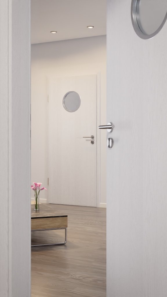 Dla przytulnej atmosfery: Drzwi wewnętrzne ProLine LA Bullauge w białym dębie tradycyjnego producenta Hörmann sprawiają, że zawsze czujesz się dobrze we własnych czterech ścianach.