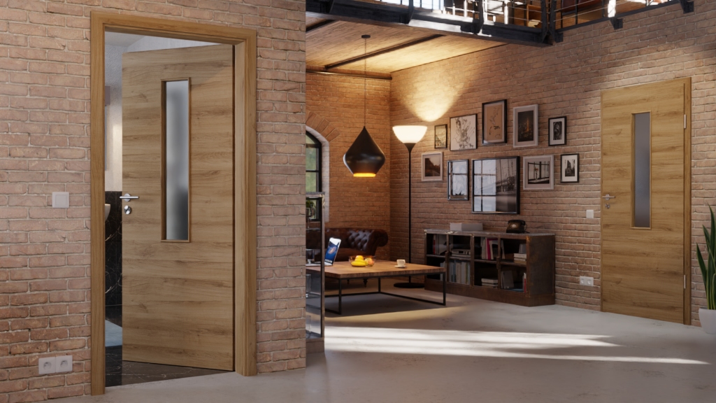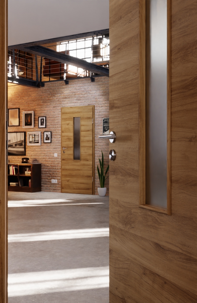Drzwi pokojowe 4 LA na środku z powierzchnią Duradecor dąb naturalny wzdłuż