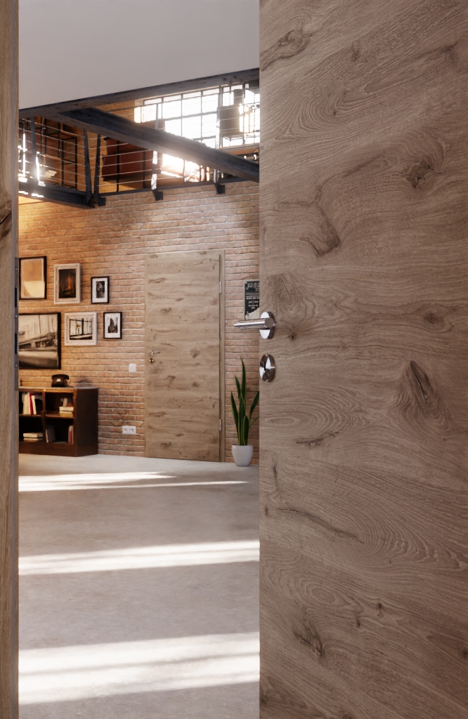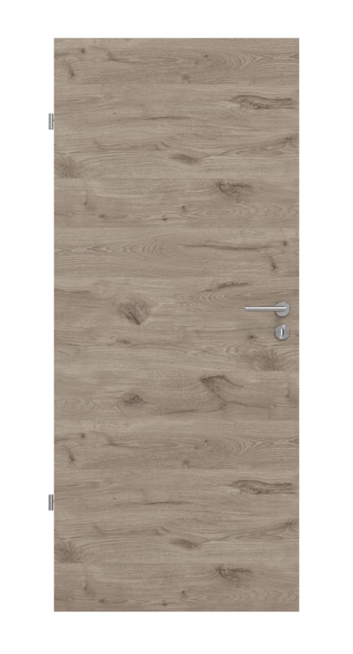 Codzienna, odporna na zużycie drzwi wewnętrzne ProLine w dębie północnym, w tym płyta wiórowa i dwuczęściowe zawiasy, które zapewniają stabilność: