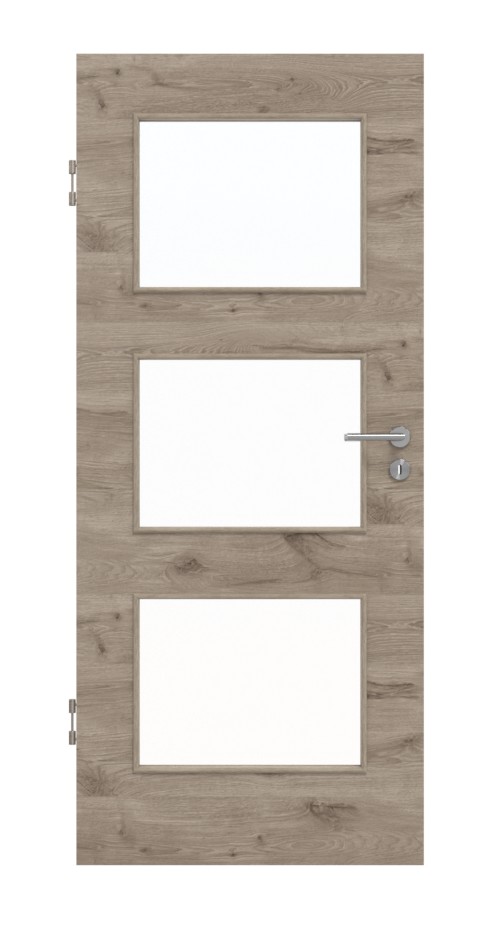 Codzienna, odporna na zużycie drzwi wewnętrzne ProLine w dębie północnym, w tym płyta pełno-włóknista i 3-częściowe zawiasy, które zapewniają stabilność: