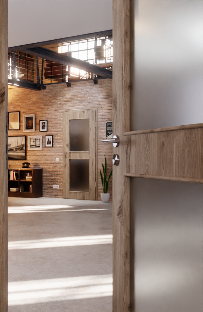 Trwałe drzwi wewnętrzne ProLine z dębu północnego z 3-częściowymi zawiasami i pełną płytą jako rdzeń drzwi: