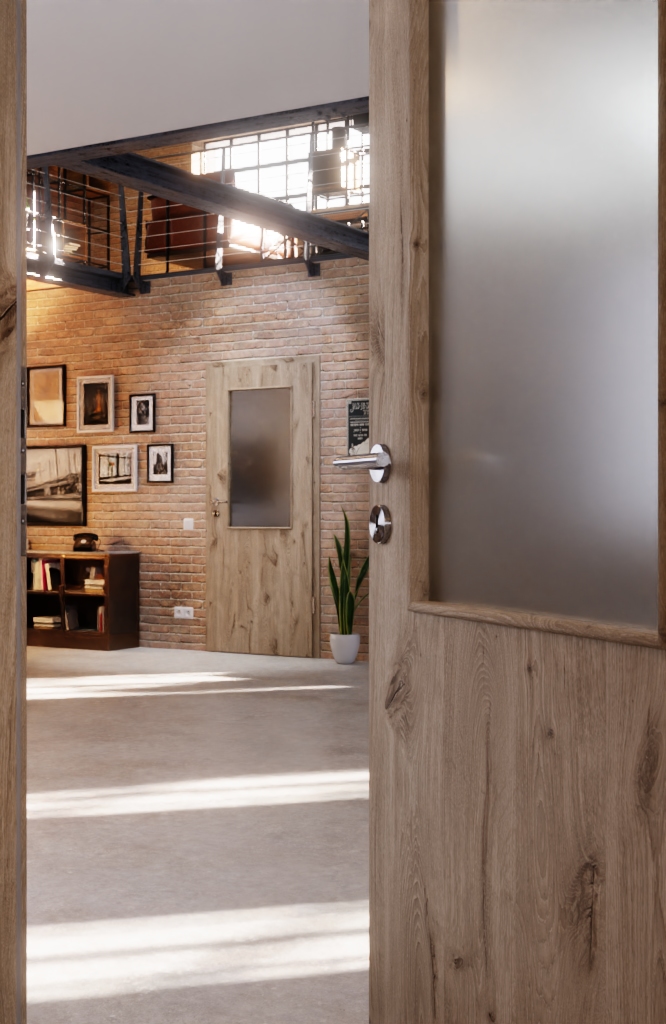 Codzienna, wytrzymała drzwi wewnętrzne ProLine z dębu północnego z wysokiej jakości pełną płytą i 3-częściowymi zawiasami: