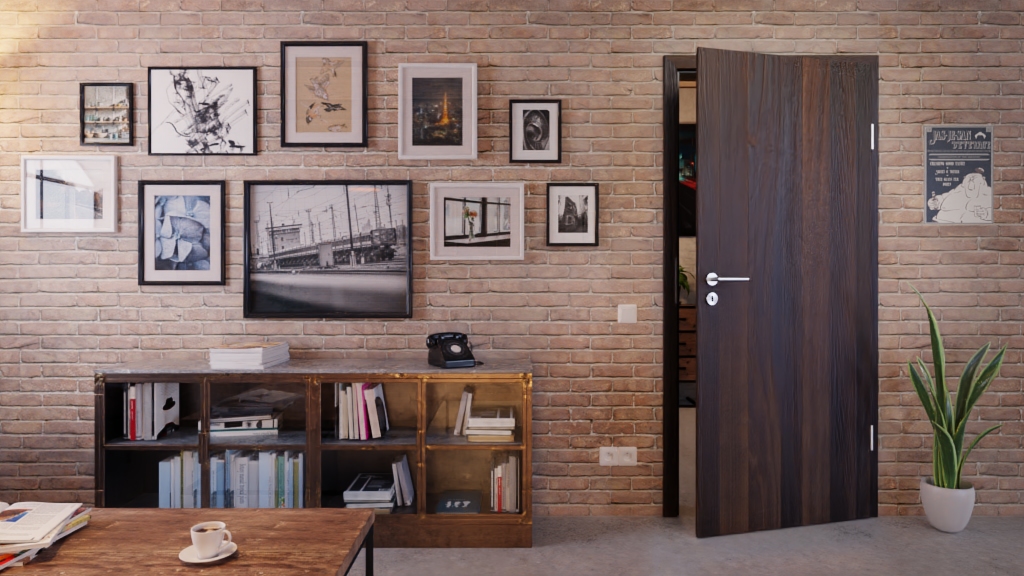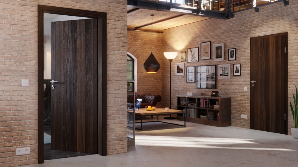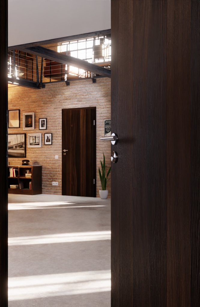 • Drzwi wewnętrzne fornirowane drewnem naturalnym w kolorze dąb wędzony matowy