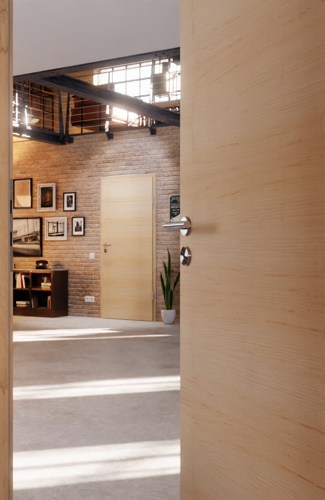 Drzwi wewnętrzne okleinowane drewnem z rdzeniem z stabilnego rdzenia rurkowego: