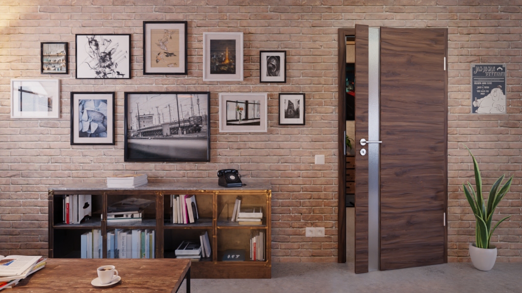 ciemny odcień drewna w poziomej optyce działa uspokajająco i tworzy ciepłą atmosferę. Dzięki długiemu pasowi świetlnemu po stronie zamka do Waszego domu wpada światło, a tym samym przyjazność.