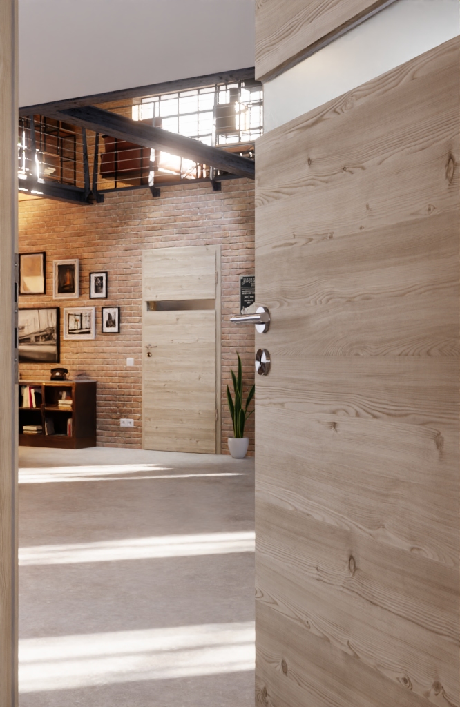 Model drzwi Pure 1 wzdłuż w kolorze modrzew jasny wzdłuż ze stabilną płytą wiórową pełną