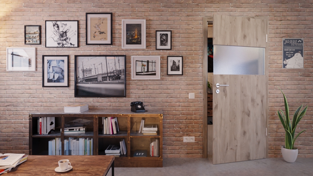 Widoczne usłojenie tworzy unikalny panel drzwiowy. Dzięki pasowi świetlnemu na wysokości oczu, który rozciąga się na całą szerokość drzwi, do Waszego domu wkrada się jasność i przyjazna atmosfera.