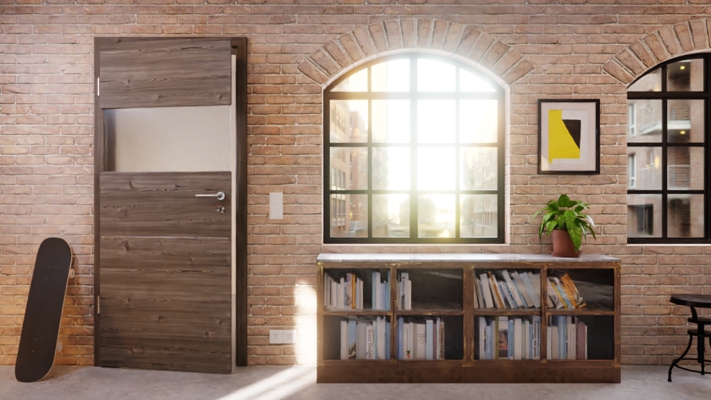 W rdzeniu skrzydła drzwiowego znajduje się płyta wiórowa. Solidne połączenie między ościeżnicą a skrzydłem drzwiowym zapewniają zawiasy, które są standardowo 3-częściowe.