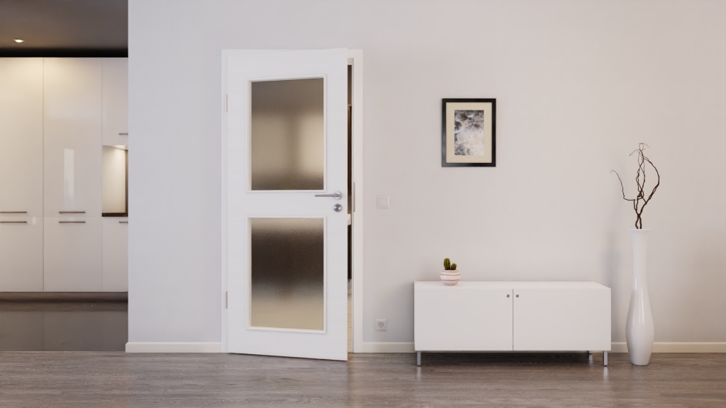 Trwały model drzwi ProLine w szczotkowanej bieli z 3-częściowymi zawiasami i stabilizującą płytą pełno-włóknistą: