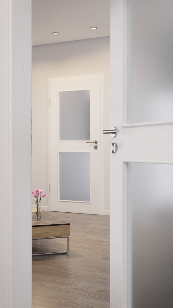 HÖRMANN drzwi wewnętrzne biel szczotkowana wzdłuż Duradecor ProLine z przeszkleniem LA 12