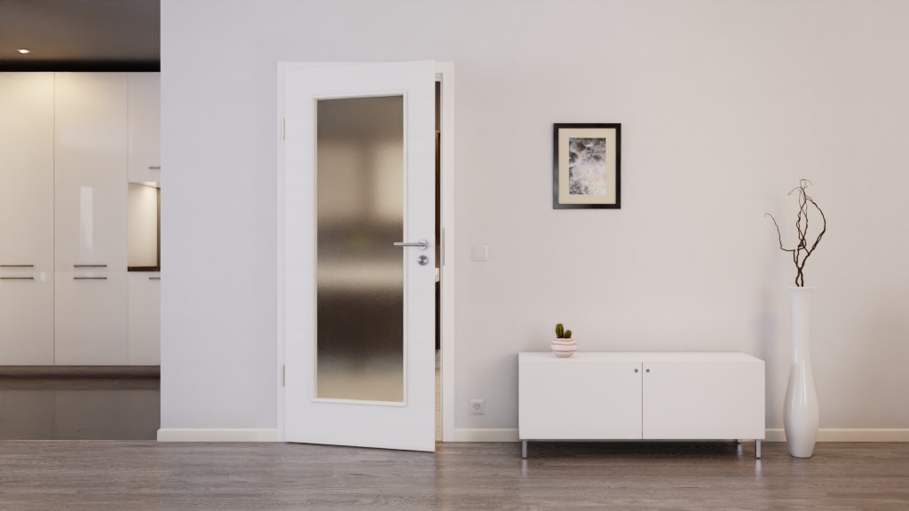 Codzienna, odporna na zużycie drzwi wewnętrzne ProLine w szczotkowanej bieli z 3-częściowymi zawiasami i stabilizującą płytą pełno-włóknistą: