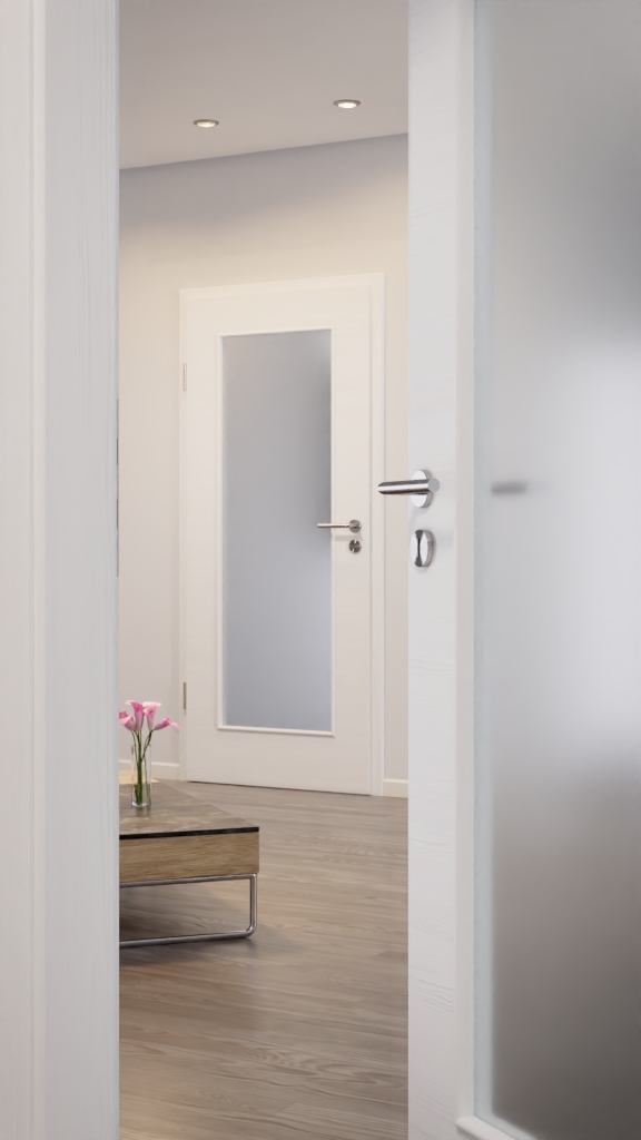 HÖRMANN drzwi wewnętrzne biel szczotkowana wzdłuż Duradecor ProLine z przeszkleniem LA 8