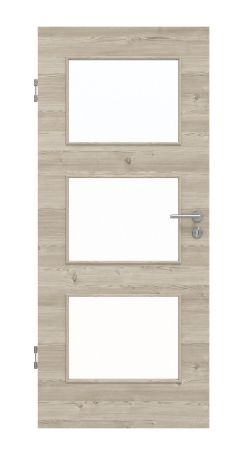 Trwały model drzwi ProLine w jasnym, szczotkowanym świerku poziomym z 3-częściowymi zawiasami i płytą pełnoobwodową jako rdzeń drzwi:
