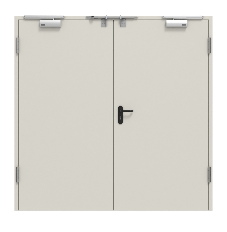Zestaw drzwi wewnętrznych od Hörmann z podwójnymi drzwiami przeciwpożarowymi ze stali T30-2, ościeżnicą i klamką:
