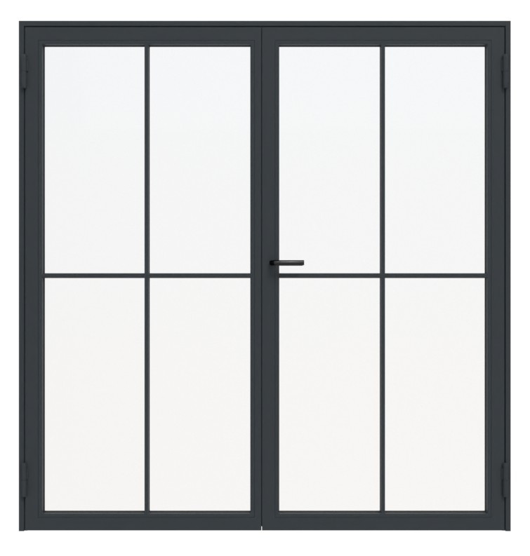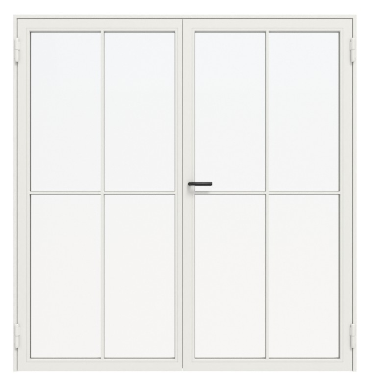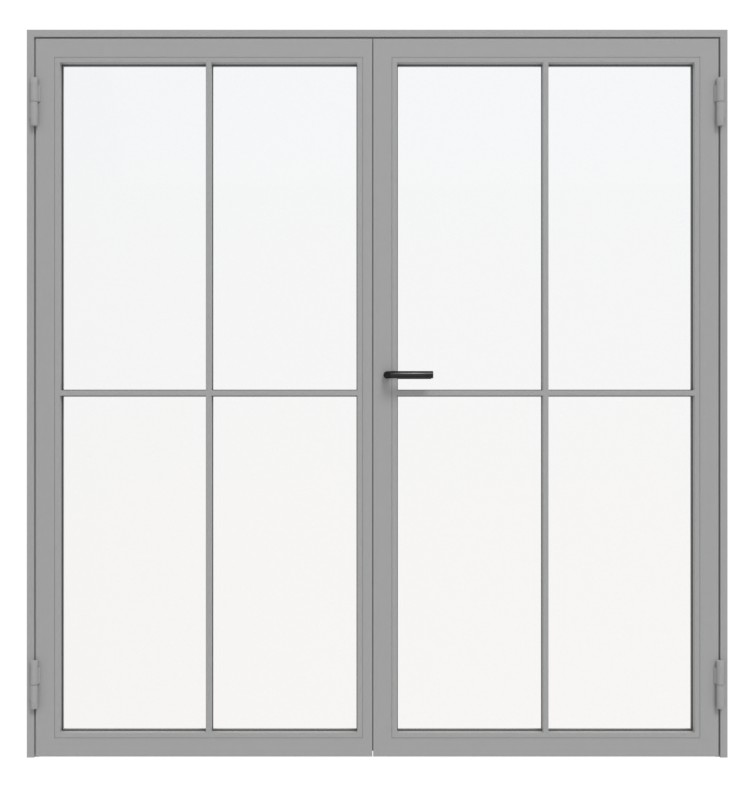 W tym modelu stal łączy się z 6 mm grubym szkłem laminowanym. Gwarantuje to nie tylko przestronne, dobrze oświetlone pomieszczenia, ale także elegancki wygląd w stylu industrialnym. Na obu skrzydłach drzwi znajdują się pionowa i pozioma listwa.