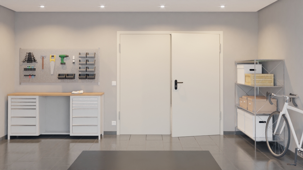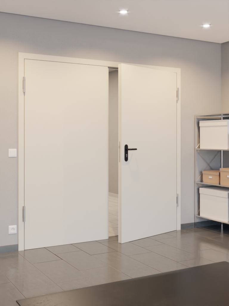 Zestaw drzwi wewnętrznych od Hörmann, w tym podwójne drzwi stalowe wielofunkcyjne MZ-2, ościeżnica narożna i klamka: