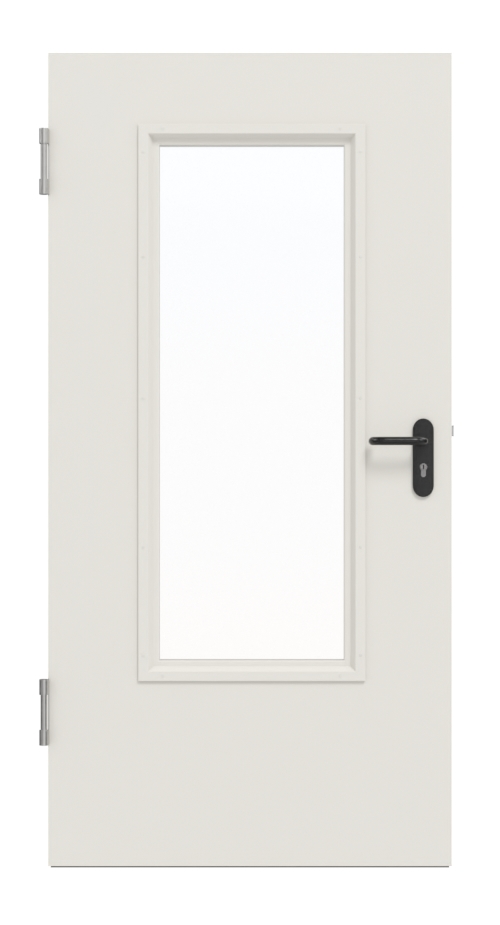 Praktyczny zestaw drzwi wewnętrznych od Hörmann, w tym stalowe drzwi wielofunkcyjne MZ-1 LA-B3, ościeżnica narożna i klamka: