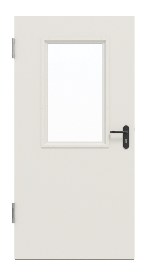 Kompletny zestaw drzwi wewnętrznych od Hörmann, który obejmuje stalowe drzwi wielofunkcyjne MZ-1 LA-B2, ościeżnicę oraz klamkę: