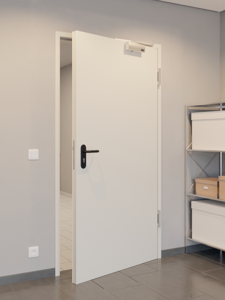 Kompletny zestaw drzwi wewnętrznych od Hörmann z stalowymi drzwiami przeciwpożarowymi T30-1, ościeżnicą i klamką: