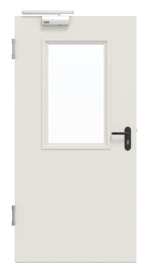 Kompletny zestaw drzwi wewnętrznych od Hörmann, w tym stalowe drzwi przeciwpożarowe T30-1 LA-B2, ościeżnica i klamka: