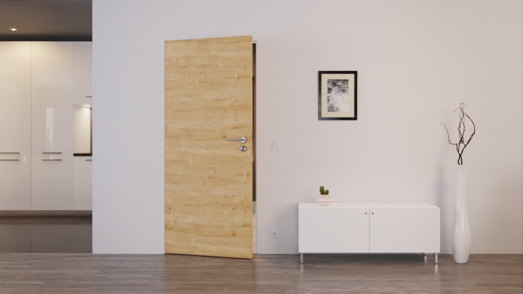 Zestaw drzwi wewnętrznych z wytrzymałym rdzeniem z pełnego wióra i krawędzią bezfazową: