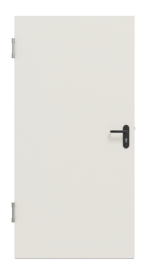 Praktyczny zestaw drzwi wewnętrznych od Hörmann, który zawiera stalowe drzwi wielofunkcyjne MZ-1, ościeżnicę blokową 62/55 oraz klamkę drzwiową: