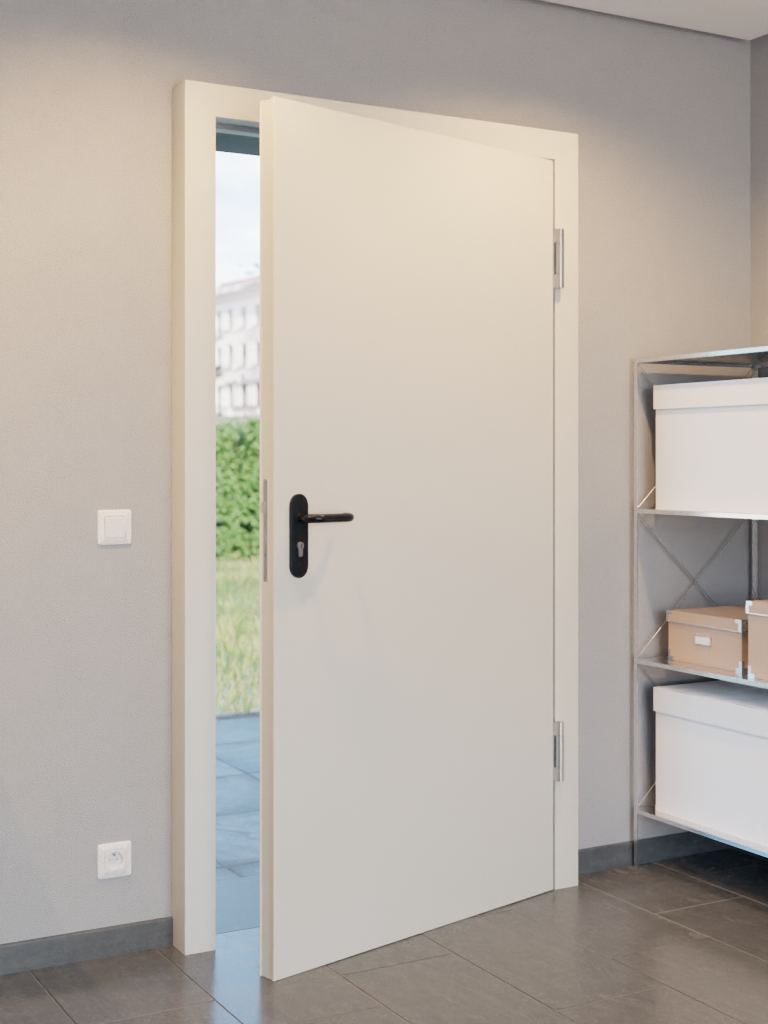 Jakościowy zestaw drzwi zewnętrznych od Hörmann, w tym stalowe drzwi wielofunkcyjne MZ-1, ościeżnica i klamka: