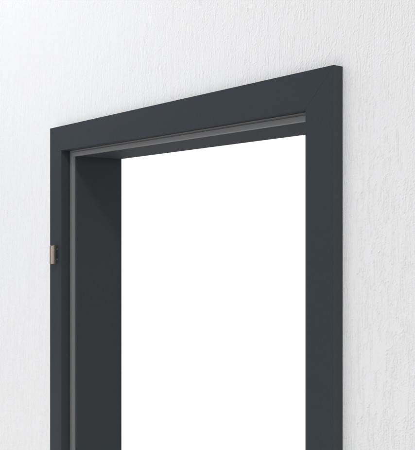 Idealna ościeżnica do drzwi wejściowych do mieszkania: Ościeżnica w kolorze szarym antracytowym marki Hörmann stanowi stylową okładzinę ściany.