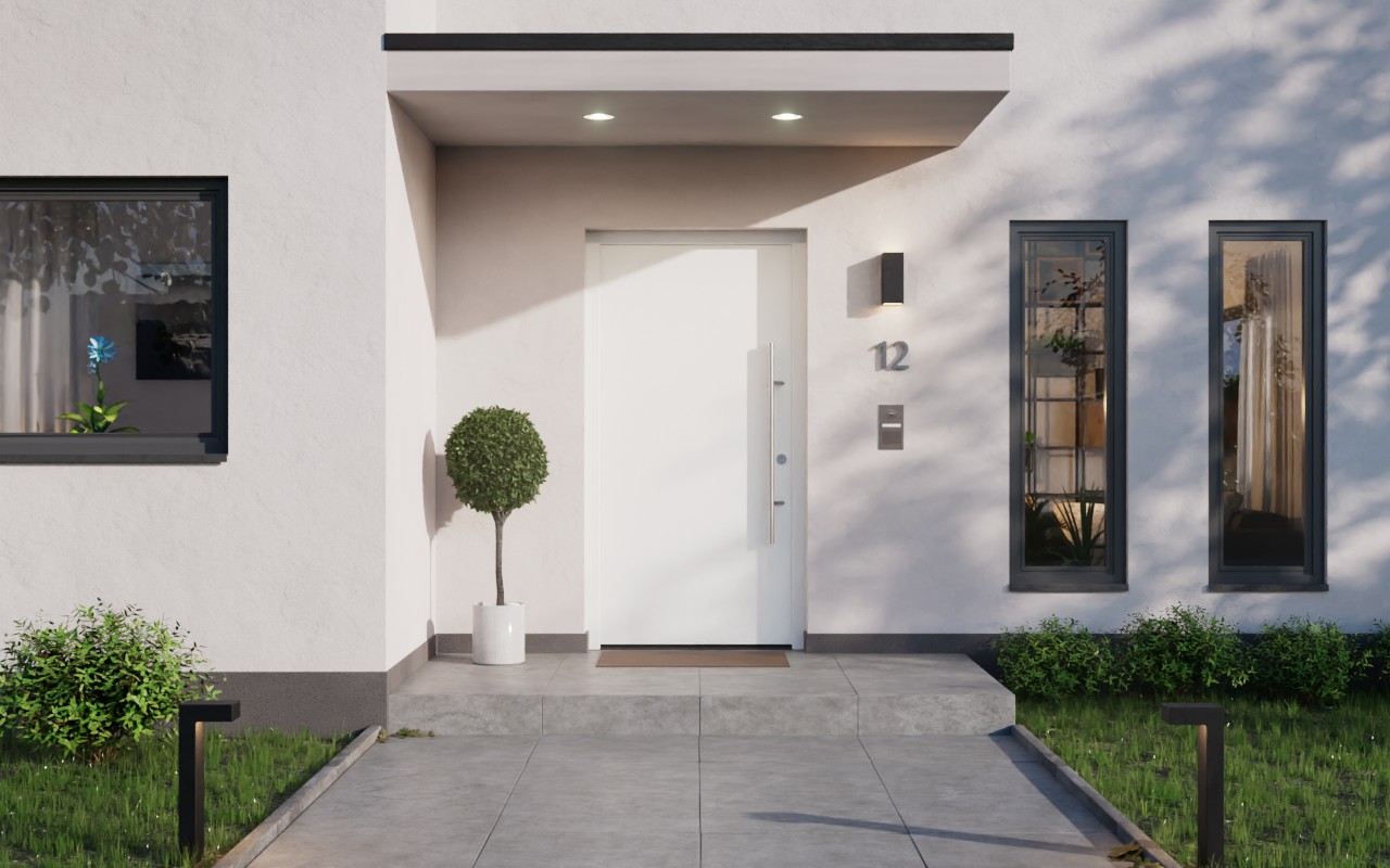 Hörmann Haustür ISOPRO Secur IPS 010 RAL 9016-RAL 9016 Frontansicht außen