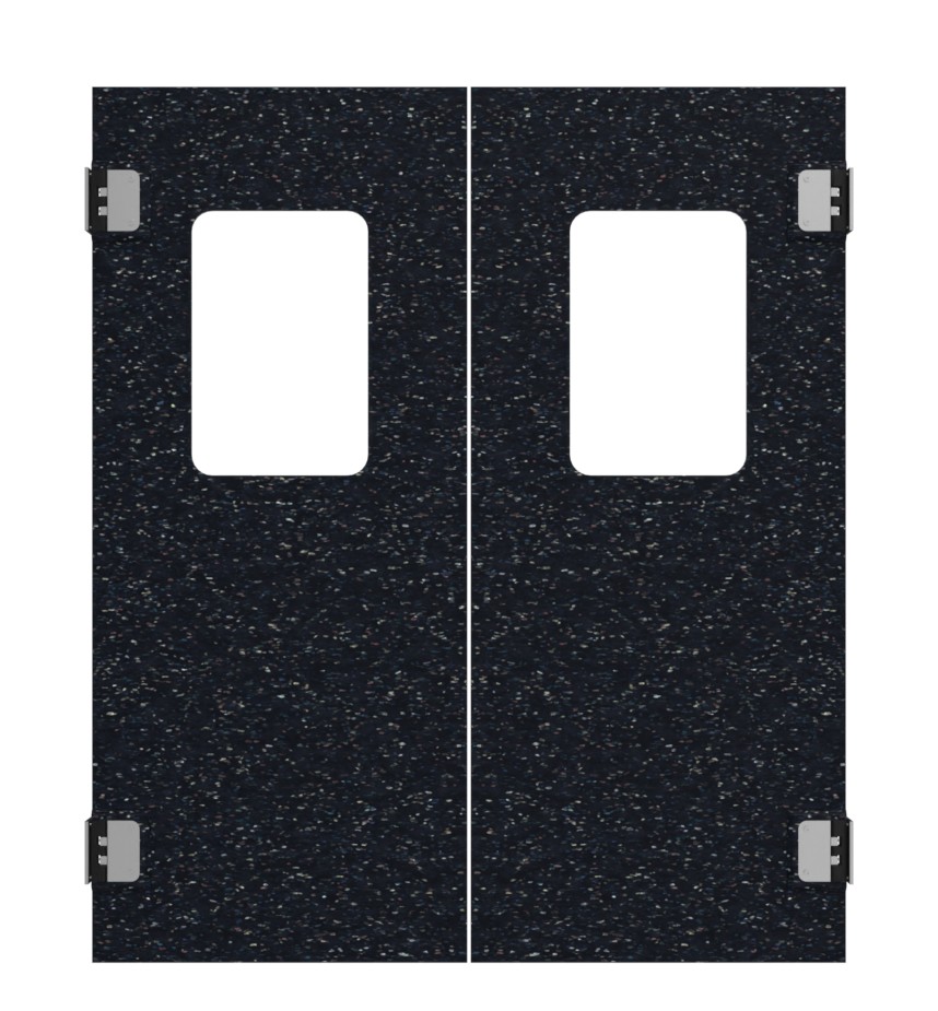 Drzwi wahadłowe wykonane są z wytrzymałego i łamanego polietylenu. Skrzydło drzwi ma grubość 15 mm i jest zaokrąglone na krawędziach. Zintegrowane przeszklenia składają się z 15 mm grubego szkła akrylowego i są osadzone na równi z powierzchnią.