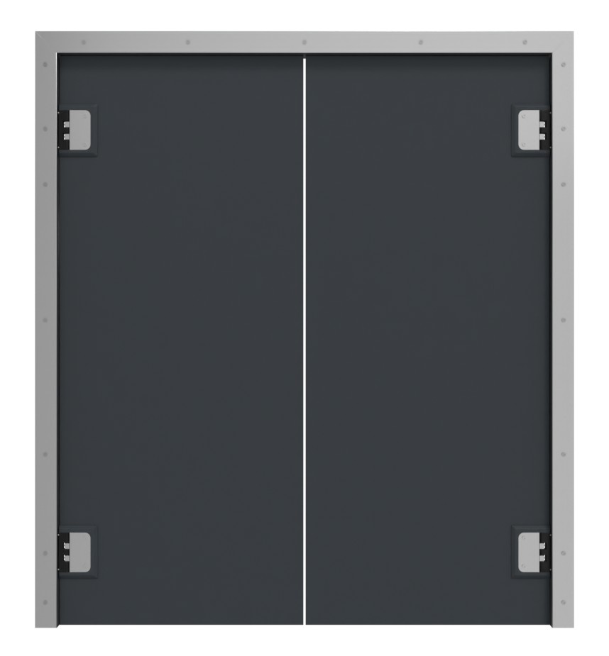 Drzwi wahadłowe wykonane są z wytrzymałego i odpornego na złamania polietylenu. Skrzydło drzwi ma grubość 15 mm i jest zaokrąglone na krawędziach.