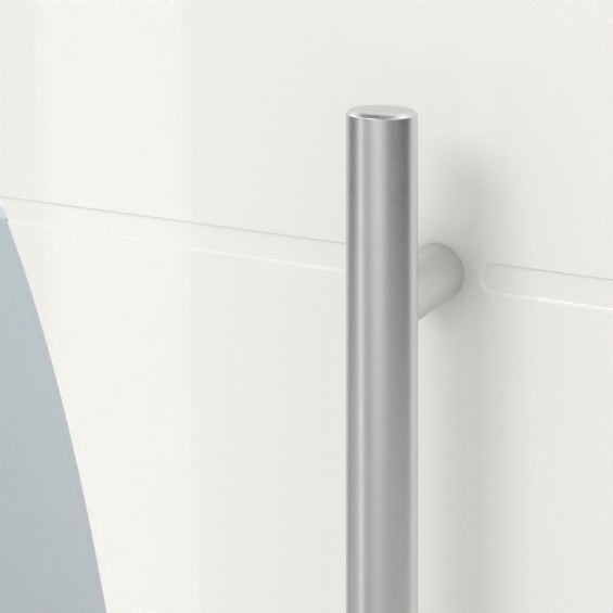Elegancki uchwyt drążkowy z matowej stali szlachetnej szczotkowanej oraz okrągła rozeta ze stali szlachetnej nad wkładką profilową z zabezpieczeniem przed manipulacją dopełniają ten niepowtarzalny model.