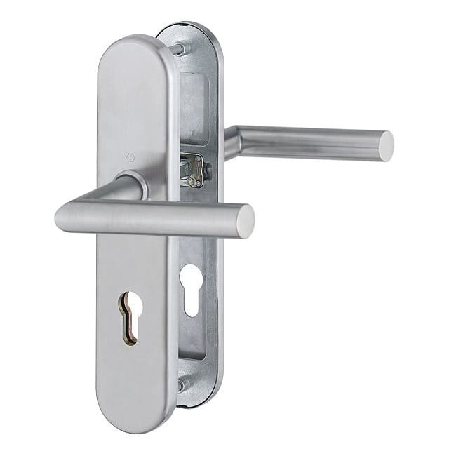 Ten model, posiadający certyfikat DIN 18257 ES1, zapewnia dodatkowe zabezpieczenie drzwi wejściowych do mieszkania, ponieważ utrudnia manipulacje np. przy trzpieniu drzwiowym. Kolejną zaletą zamka z zabezpieczeniem przed zmianą jest jego stabilność. Dzięki podkonstrukcji zestaw pozostaje stabilny nawet po bardzo częstym użytkowaniu i nie poluzowuje się. Model wykonany ze stali szlachetnej jest łatwy w czyszczeniu.