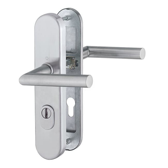 Wyróżnia się jakością mechaniczną: Większe bezpieczeństwo drzwi wejściowych do mieszkania zapewnia zamek z zabezpieczeniem przed zmianą Stockholm firmy Hoppe.