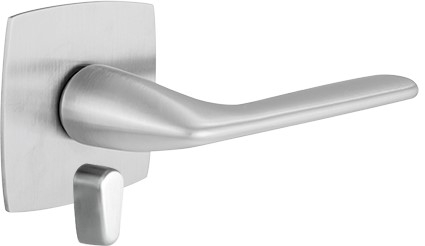 Prawie płaskie rosety z matowej stali nierdzewnej stanowią prostą bazę dla klamek, które również wykonane są ze stali nierdzewnej. Model jest w tej wersji bez zamka, ale na życzenie dostępny z rozetą na klucz PZ lub owalnym.