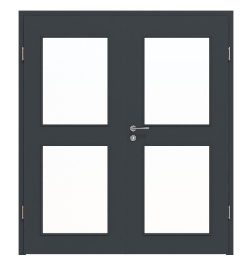 Odbierz drzwi i ościeżnicę w jednej cenie: Dzięki swojej prostoliniowej formie drzwi podwójne Basic Lak Antracyt od Huga pasują niemal do każdego wnętrza.