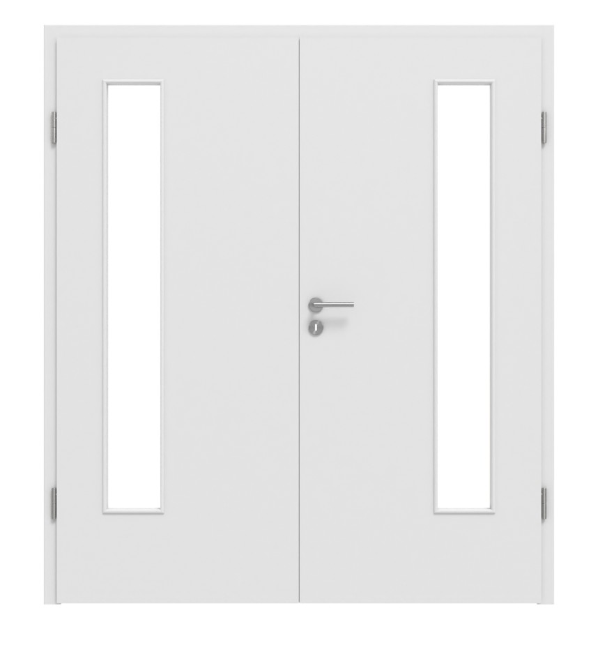 Nowoczesne, podwójne drzwi wewnętrzne z rdzeniem z pełnej płyty i łatwą do czyszczenia powłoką Durat w kolorze białym: