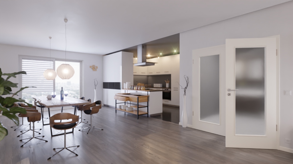 Wysokiej jakości, dwuskrzydłowe drzwi wewnętrzne z rdzeniem z pełnego wióru i gładką powierzchnią lakieru w białym kolorze podobnym do RAL 9010: