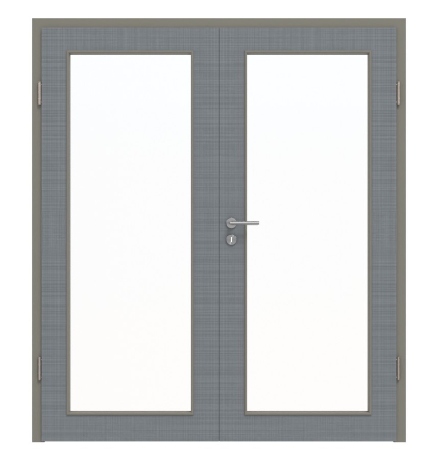 Wysokiej jakości drzwi podwójne z rdzeniem z pełnego wióra i odporną na światło powierzchnią Durat w kolorze szaro-białym Hygge:
