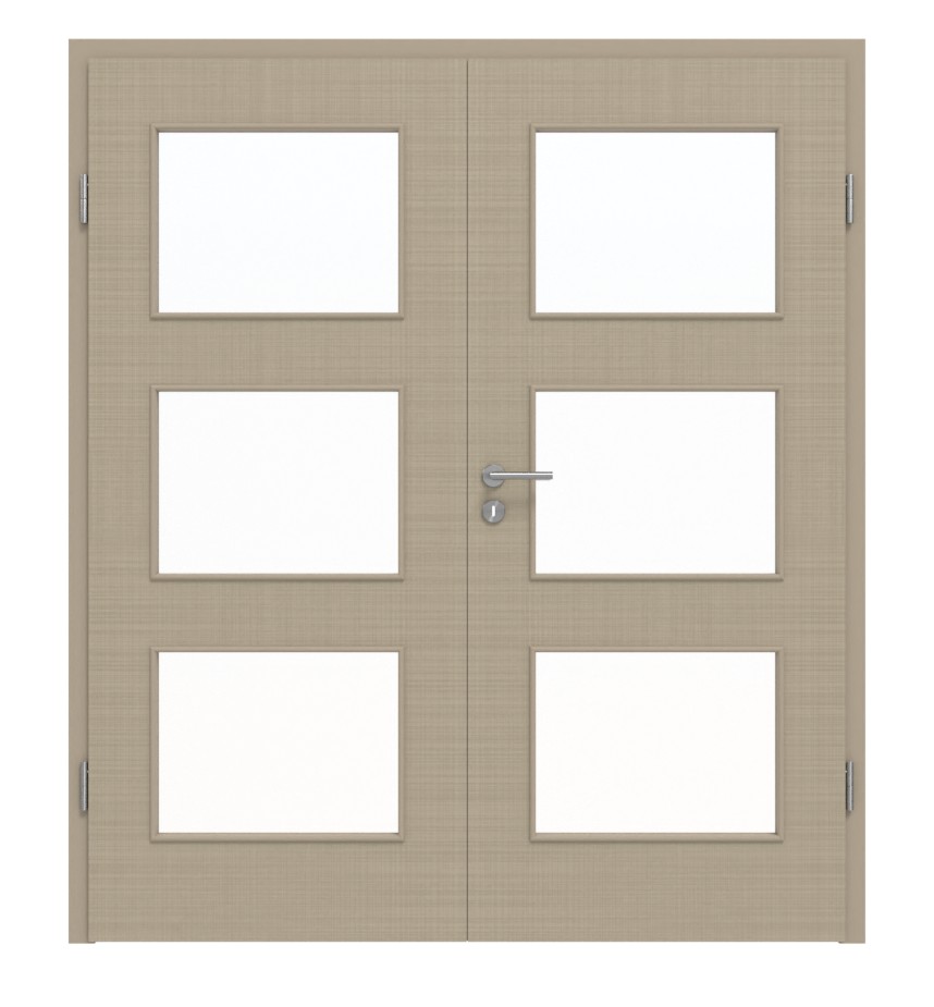 Stylowa drzwi podwójne z rdzeniem z pełnego wióra i odporną na ścieranie powłoką Durat w kolorze Cotton like Taupe: