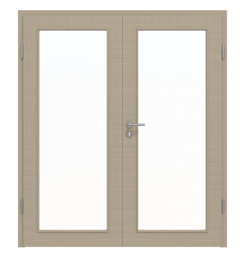 Nowoczesne drzwi podwójne z pełnymi wzmocnieniami i łatwą w pielęgnacji powłoką Durat w kolorze Cotton like Taupe: