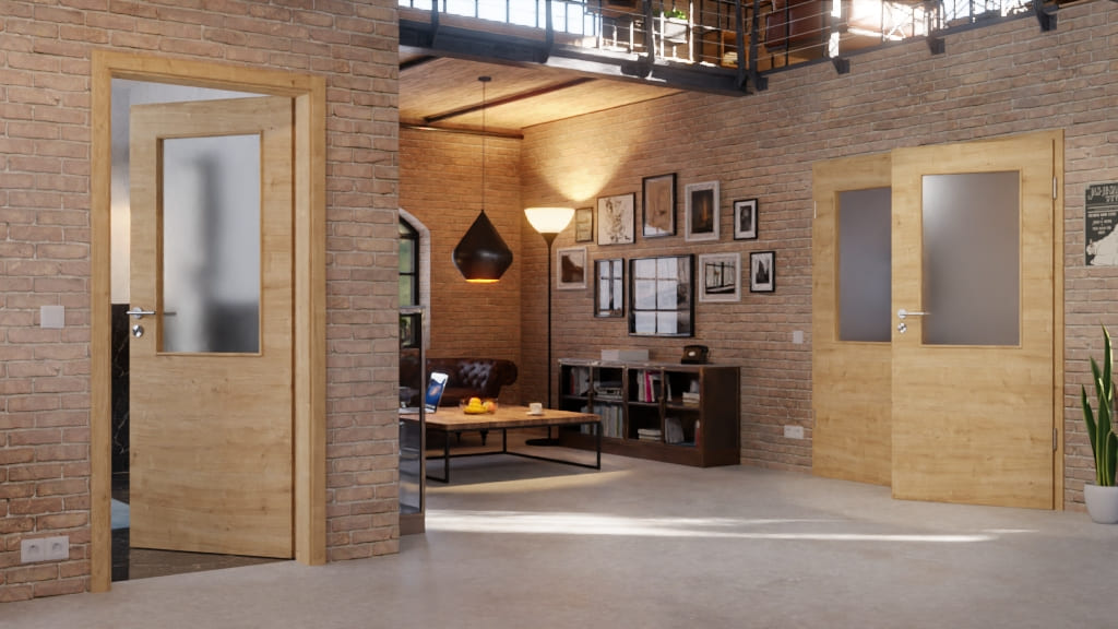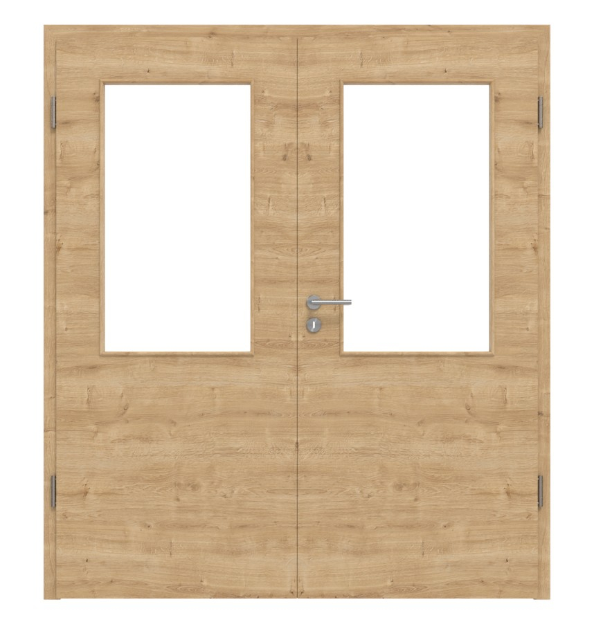 Przestronna podwójna drzwi z pełnym rdzeniem i odporną na zarysowania powłoką Durat w dębie o poprzecznych słojach: