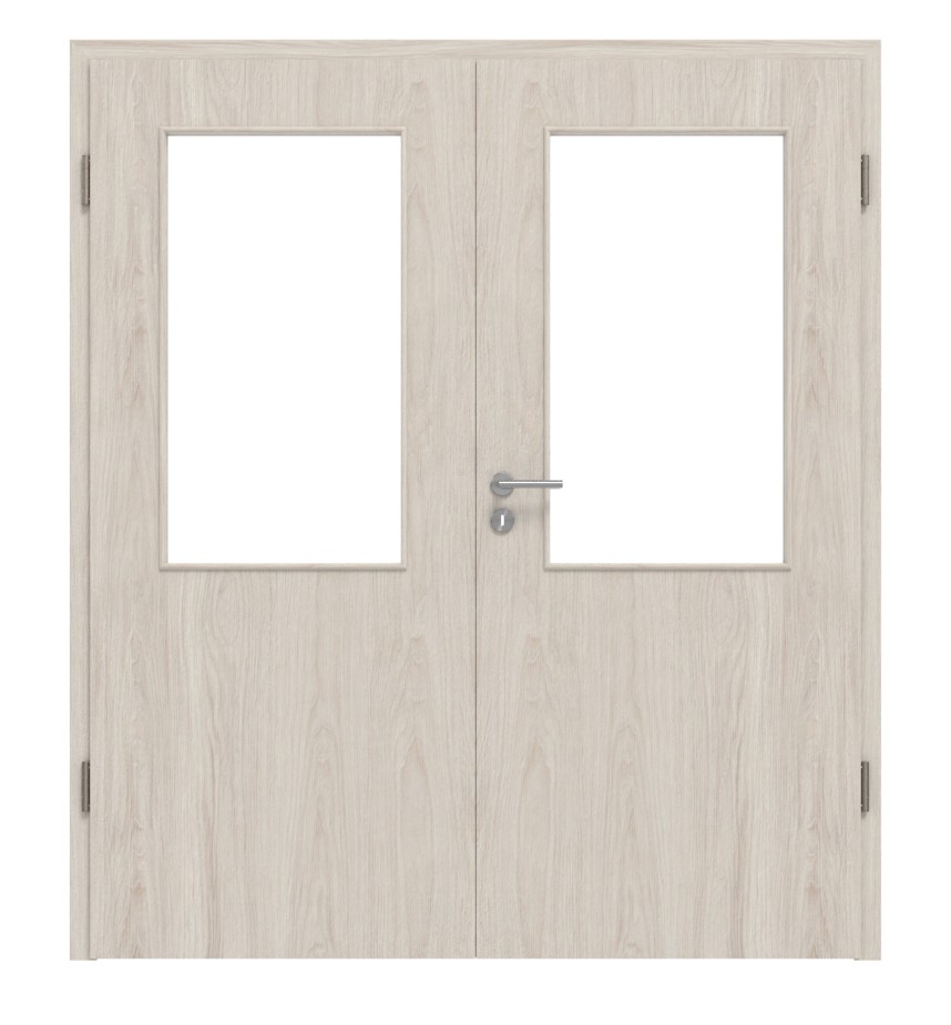 Nowoczesne, podwójne drzwi do pomieszczeń mieszkalnych z wkładką pełnoobwodową i łatwym do czyszczenia Duratem w dębie lakierowanym: