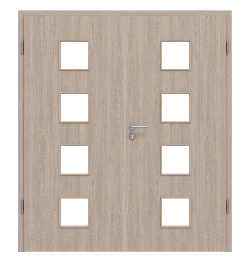 Piękne drzwi podwójne z rdzeniem z pełnej płyty i odporną na zarysowania powierzchnią Durat w szarym dębie: