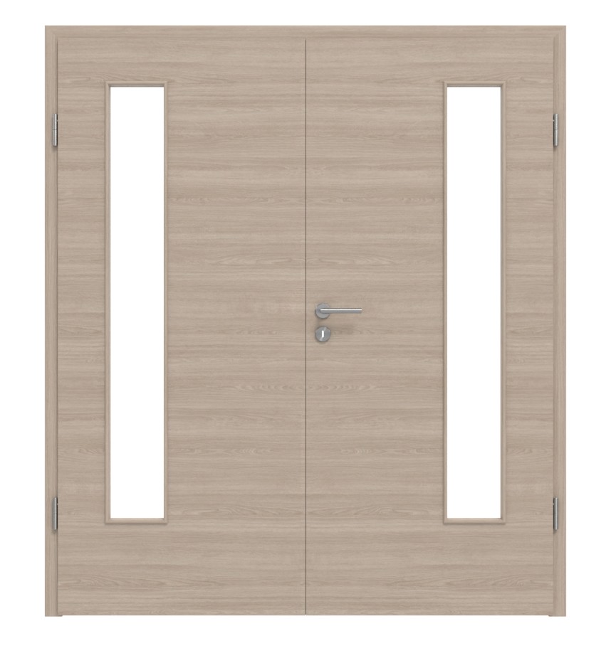 Wysokiej jakości podwójne drzwi z rdzeniem pełnoobciążeniowym i sprawdzonym w codziennym użytkowaniu Durat w szarym dębie w poziomie:
