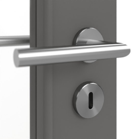 Większość skrzydeł drzwiowych zajmują stylowe przeszklenia, które są oprawione w nałożone listwy szklane. Nowoczesny design uzupełnia jednolita powłoka w harmonijnym odcieniu Hygge Szary.